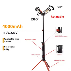 Luz DE TRABAJO LED recargable para acampar de 4000mAh con trípode Iluminación portátil para el sitio de trabajo para construcción y reparación