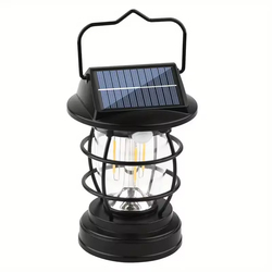 โคมไฟตั้งแคมป์พลังงานแสงอาทิตย์โคมไฟเรโทรแบบมือถือชาร์จไฟได้ไฟ LED อเนกประสงค์สำหรับเต็นท์บ้านและกลางแจ้ง